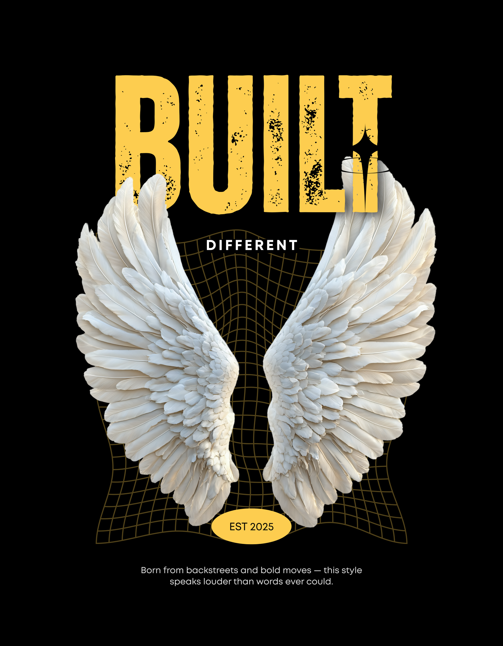 A premium black T-shirt featuring a bold, statement-making back design, “Born from backstreets and bold moves — this style speaks louder than words ever could.”