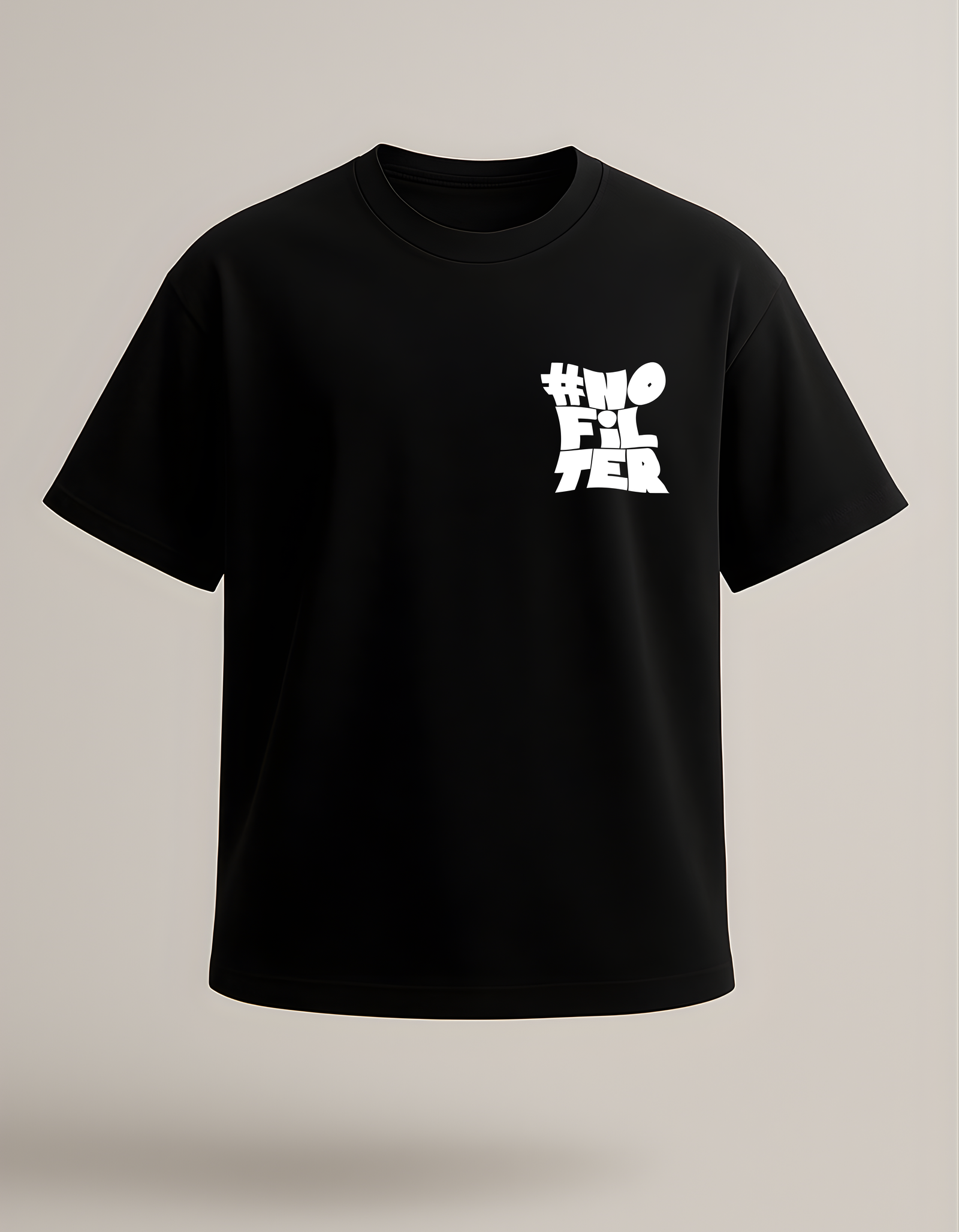 A bold black T-shirt featuring a modern, abstract topographic-line graphic on the back in subtle neon green tones.